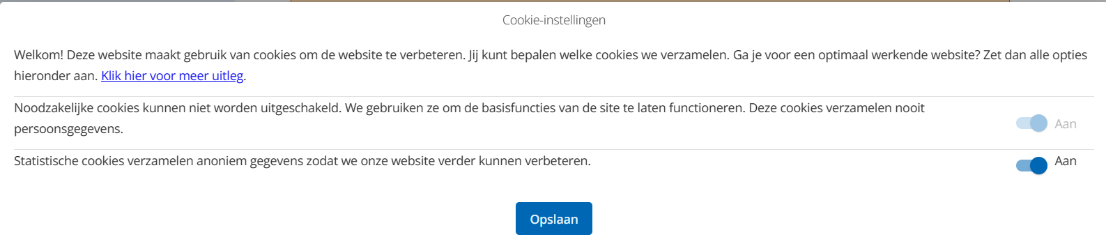 Onderin het scherm kan een Cookie popup komen welke je eerst moet bevestigen.