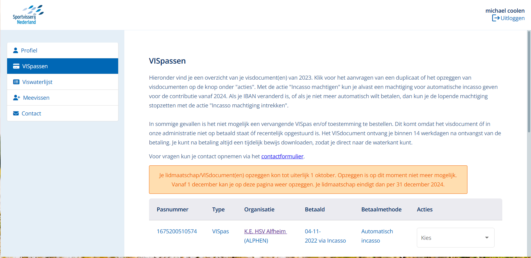 Nu kun je in je profiel al je vispassen zien en beheren.