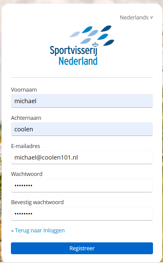 Vul in het formulier al je gegevens in zoals hiernaast in het voorbeeld staat.