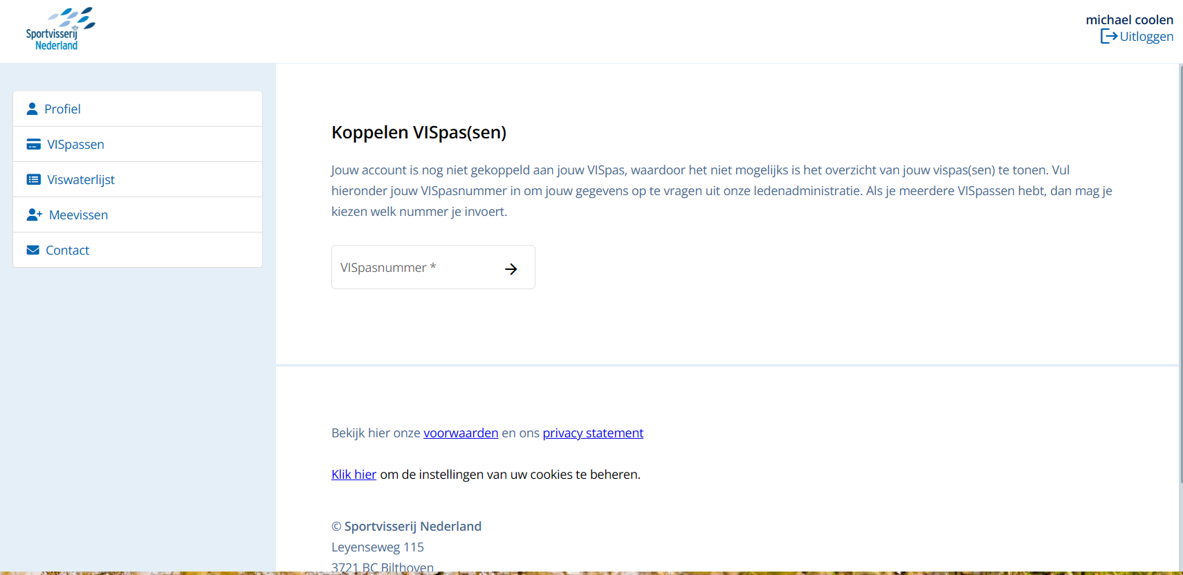 Koppel nu je vispas door het hele nummer van je Vispas in te voeren.